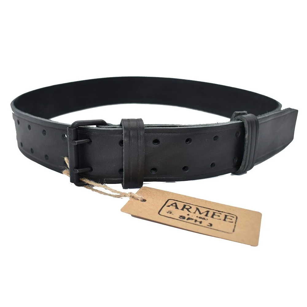 Ce ceinturon en cuir naturel teinté en noir peut avoir quelques imperfections.