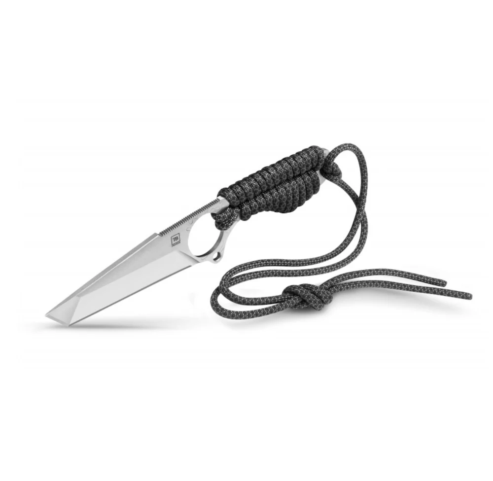 De forme « tanto », inspiré par les sabres japonais ancestraux, le S-NECK® est un couteau de cou. Tatoué sur sa partie arrière, il peut être laissé tel quel ou être tressé avec la Paracord fournie. Les 2 mètres de Paracord permettent de tresser le manche et d’utiliser la longueur restante comme cordelette pour le port autour du cou. L’étui Kydex également fourni est moulé à la forme de la lame. Il permet de porter le couteau sur vous en toute sécurité. La matière utilisée pour la lame est du Nitrox®. Il s’agit d’un acier inox dopé à l’azote, ce qui lui confère une grande résistance du couteau à la corrosion et une grande résistance de la coupe à l’usure.