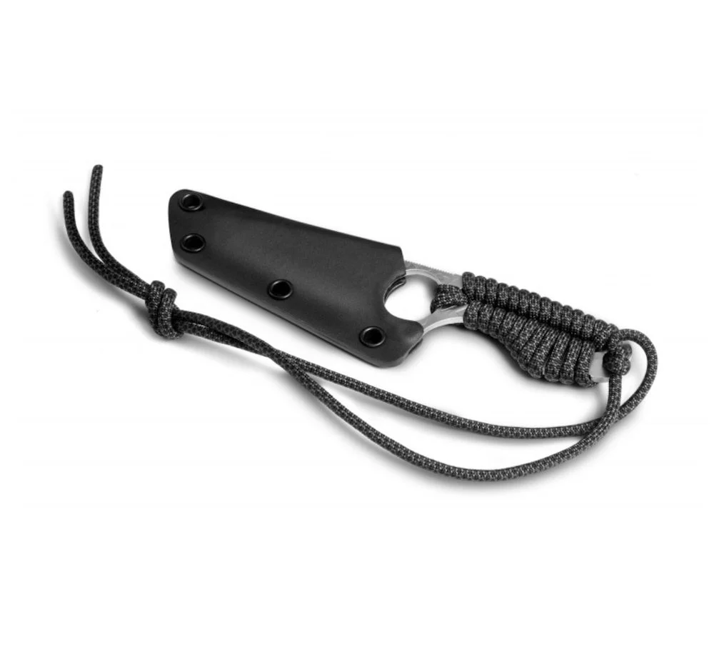 S-NECK® se prononce SNAKE, comme serpent en Anglais. Ce couteau est tatoué sur l’arrière et peut parfaitement être utilisé tel quel avec son étui en Kydex moulé à la forme de la lame. Pour attacher l’étui autour du cou, vous avez à disposition lors de la livraison 2 mètres de Paracord qui peut être coupée à la longueur souhaitée.