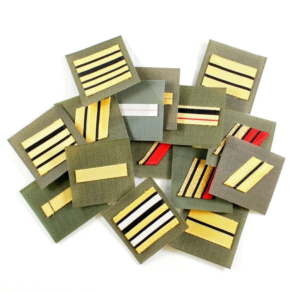 Adjudant, Adjudant-chef, Aspirant, Capitaine, Colonel, Commandant, Lieutenant, Lieutenant-Colonel, Major, Sergent, Sergent-chef, Sous-Lieutenant
