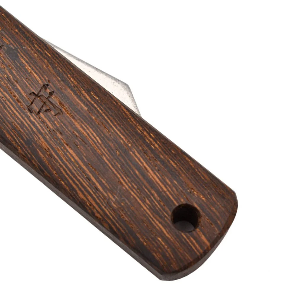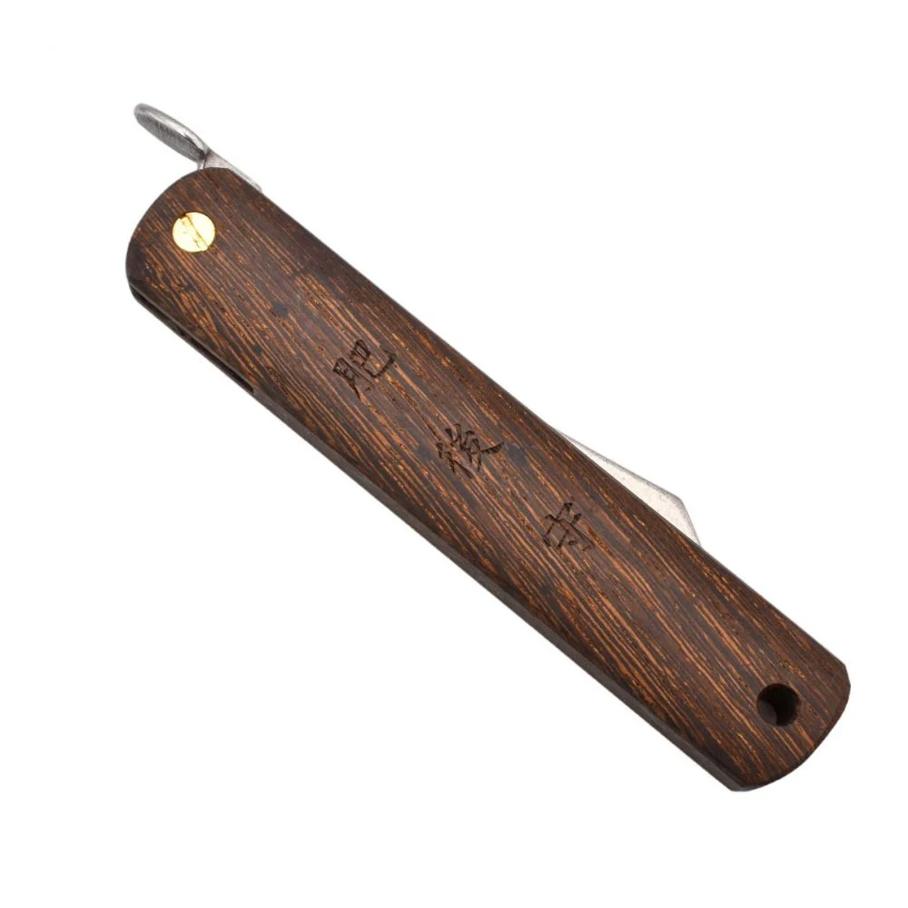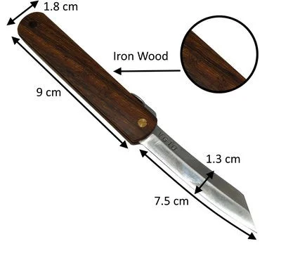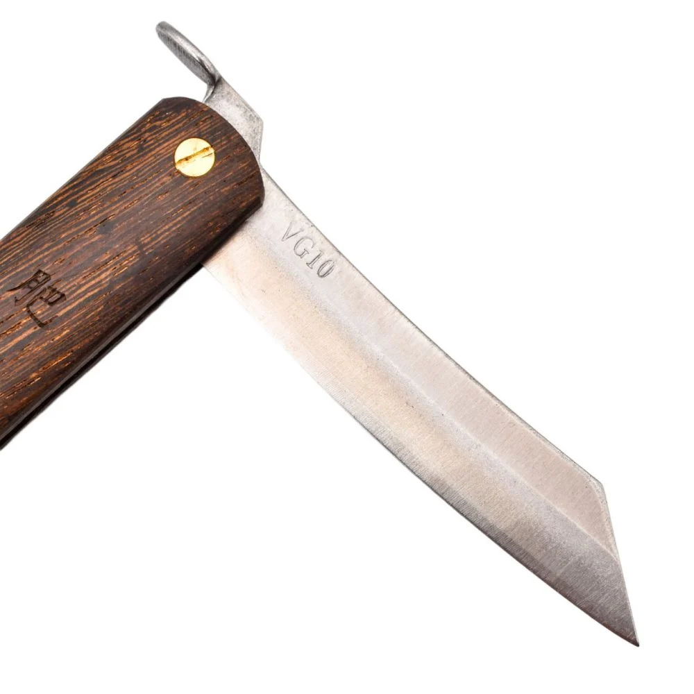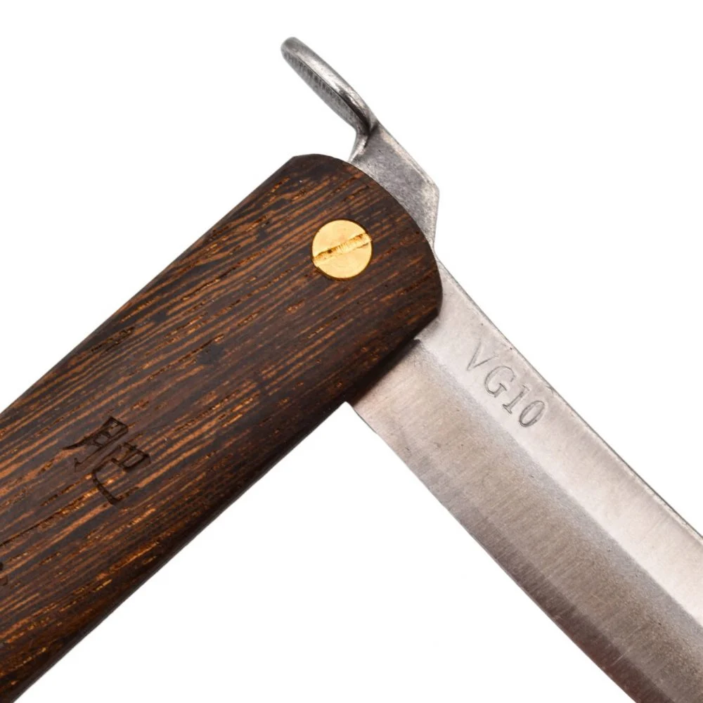 Le vrai couteau Nagao Higonokami Warikomi de fabrication japonaise.La lame est fabriquée en acier VG-10 de haute qualité.La lame est en forme de V à double tranchant, vous pouvez donc l’utiliser de chaque côté, quelle que soit la main dominante.La lame se cache dans un manche en acier inoxydable et s’ouvre facilement avec le pouce sur son manche “Chikiri”.