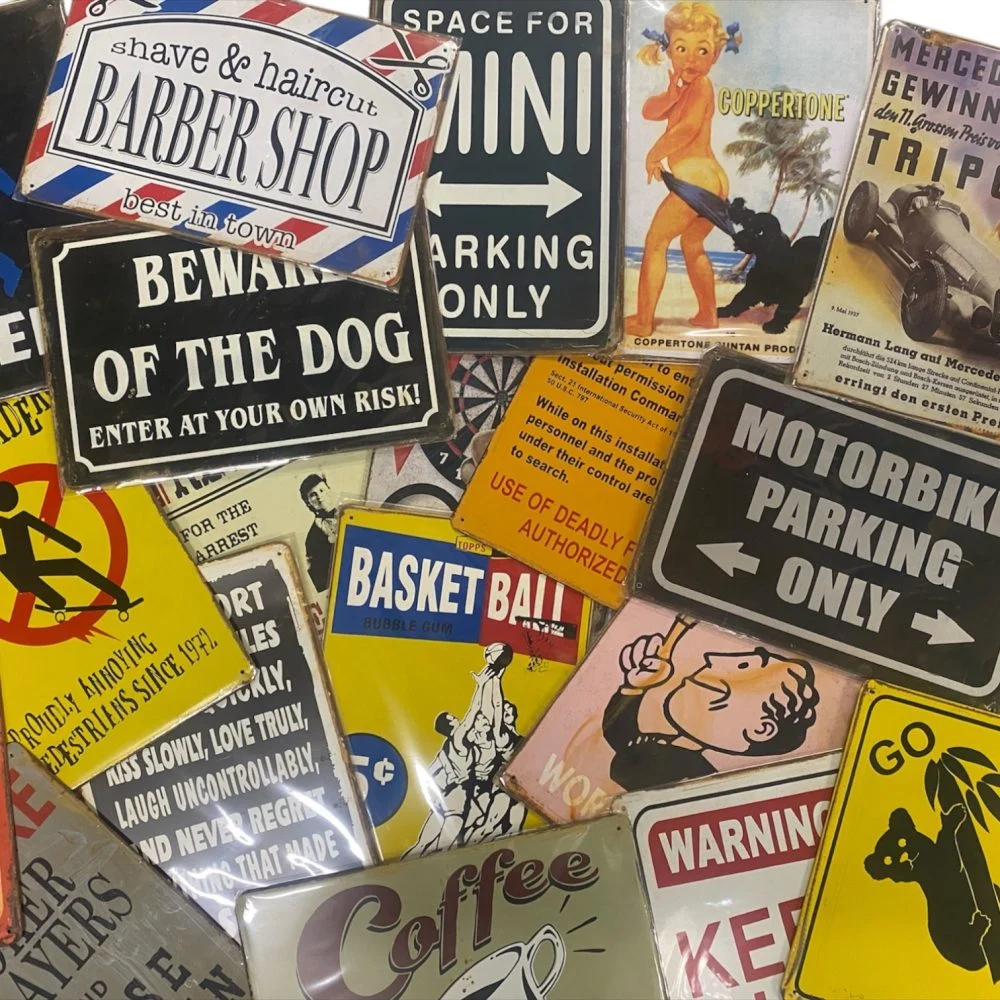 Assortiment de 25 Plaques en métal aspect vieilli (traces de rouilles, petites éraflures)